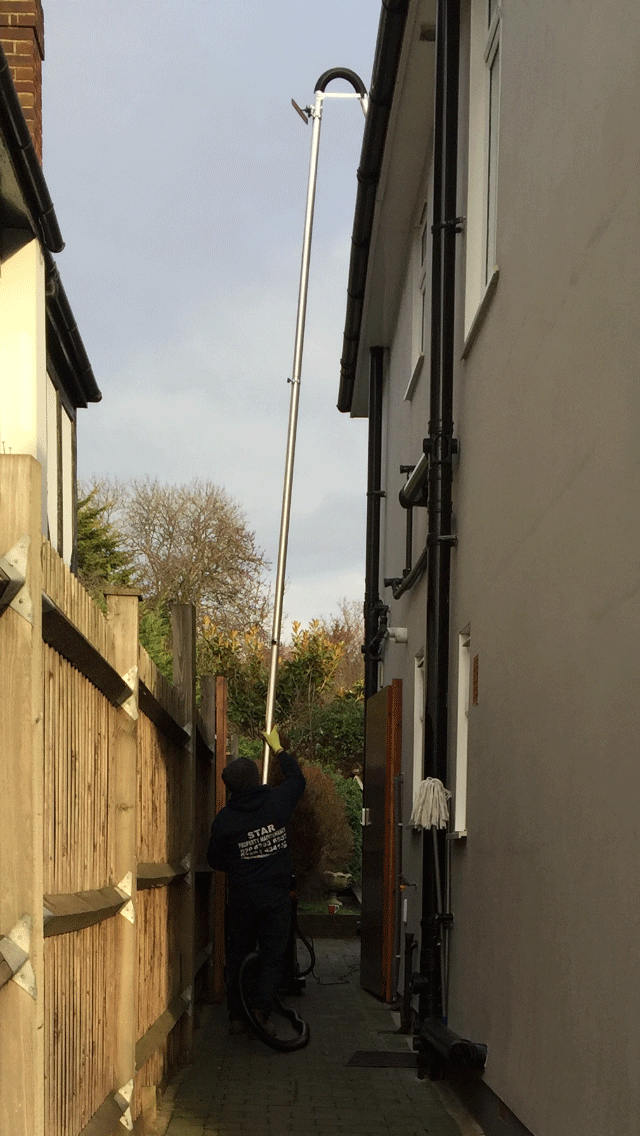 Using our latest vacuum cleaners, we are able to clean your gutters from the ground, eliminating the need for ladders. We have a maximum reach of 40ft, easily extending to loft conversions, three-storey houses and over conservatories. Our poles are fitted with the latest cameras which enable us to see even on the highest of gutters.